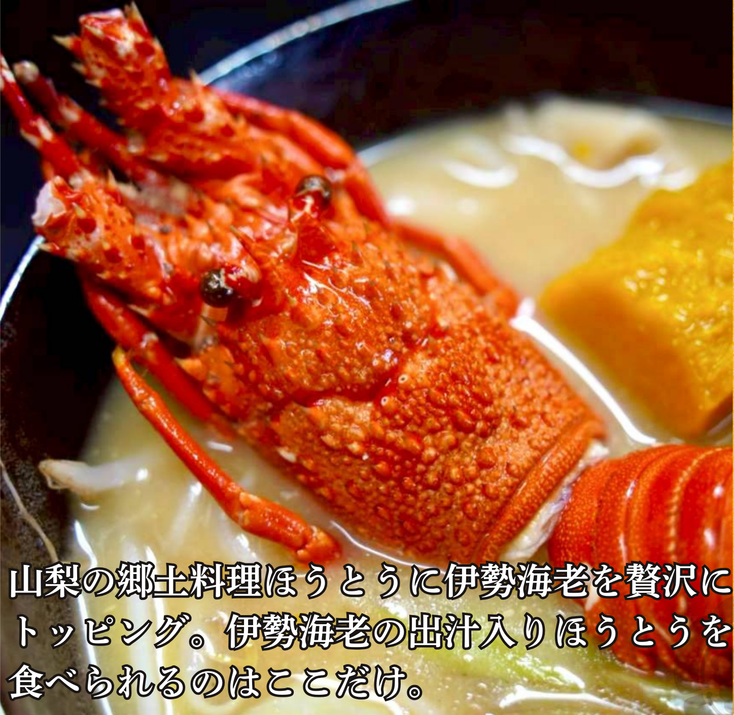 郷土料理「ほうとう作り体験」に豪華伊勢海老をトッピング。